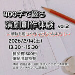 2026年1月30日(金) 、さだ東小学校2年生のみなさんと、今年度3回目となる演劇創作活動を行いました! 今回は少し難易度をアップ。7つのグループに分かれて、身体だけでお題を表現する「ジェスチャー劇」に挑戦です。実 […] - 400字で綴る演劇創作体験 第二弾です!