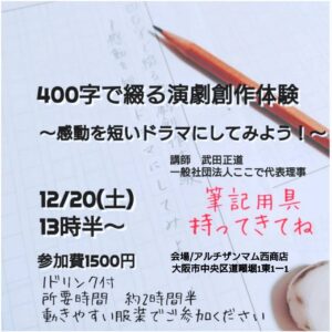 活動実績とおしらせ2025年11月20日400字スキットの演劇創作体験ができます。